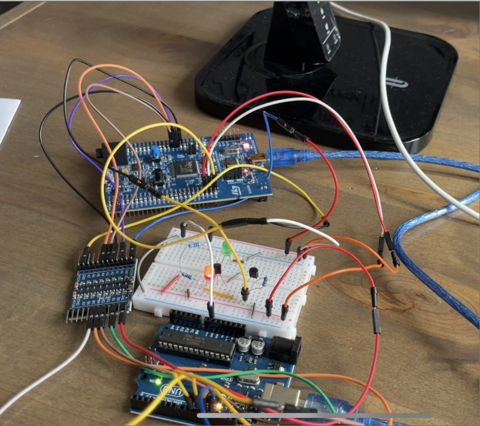 The computer is placed on a custom soldered circuit. The circuit(PCB prototype) has gone through the bring-up and hardware-in-the-loop testing. Additionally, I debugged the code using JTAG connection via OpenOCD with GDB. The circuitry enables reliable connections between peripherals and the computer, limits pick-up mechanism extraction by utilizing a DC-encoder, as well as debounces GPIO pins using an RC-based low-pass filter.