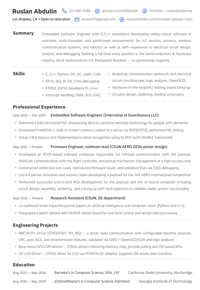 Ruslan Abdulin, Embedded Software Engineer